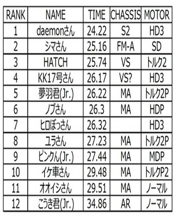 素組クラス 優勝 HATCH(MAシャーシ)、2位ちーちゃんさん(MAシャーシ)