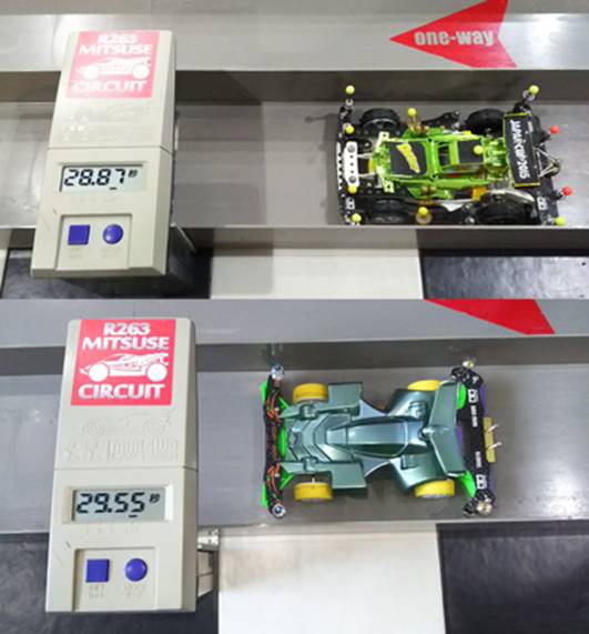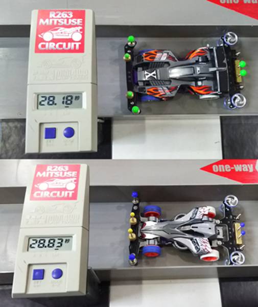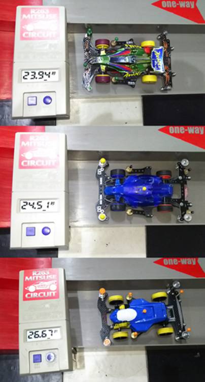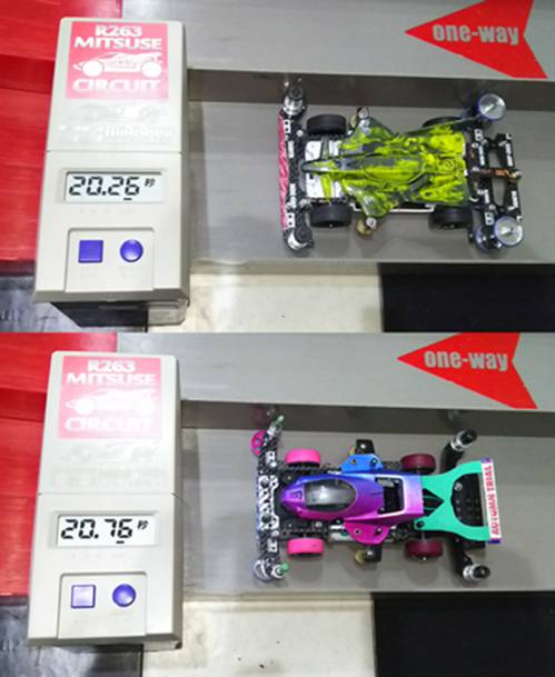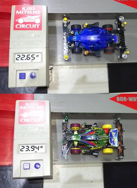 ノーマルモーターの素組でもコースアウト寸前のギリギリのレースでした!